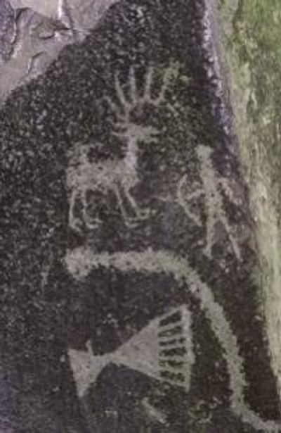 From this map you can see where a strip of land across the Bering Sea connected Asia and North America during the last Ice Age. The first humans came to the Americas from Asia across this land bridge, perhaps in search of large game animals. Scholars estimate that this migration took place somewhere between 14,000 and 50,000 years ago. When the Ice Age ended around 7000 B.C., melting glaciers raised the level of the seas so that water covered the land bridge.