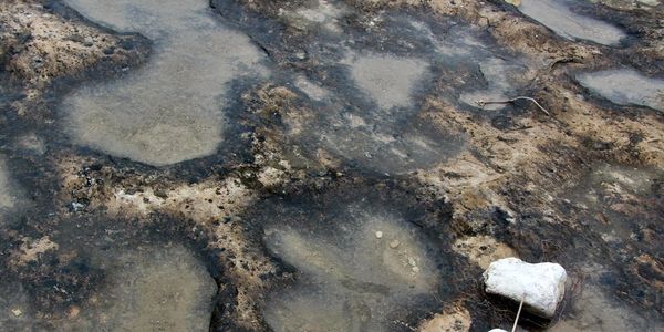 Dinosaur tracks can be found in what used to be marsh along the River (As shown below in these photographs taken March 2017.)